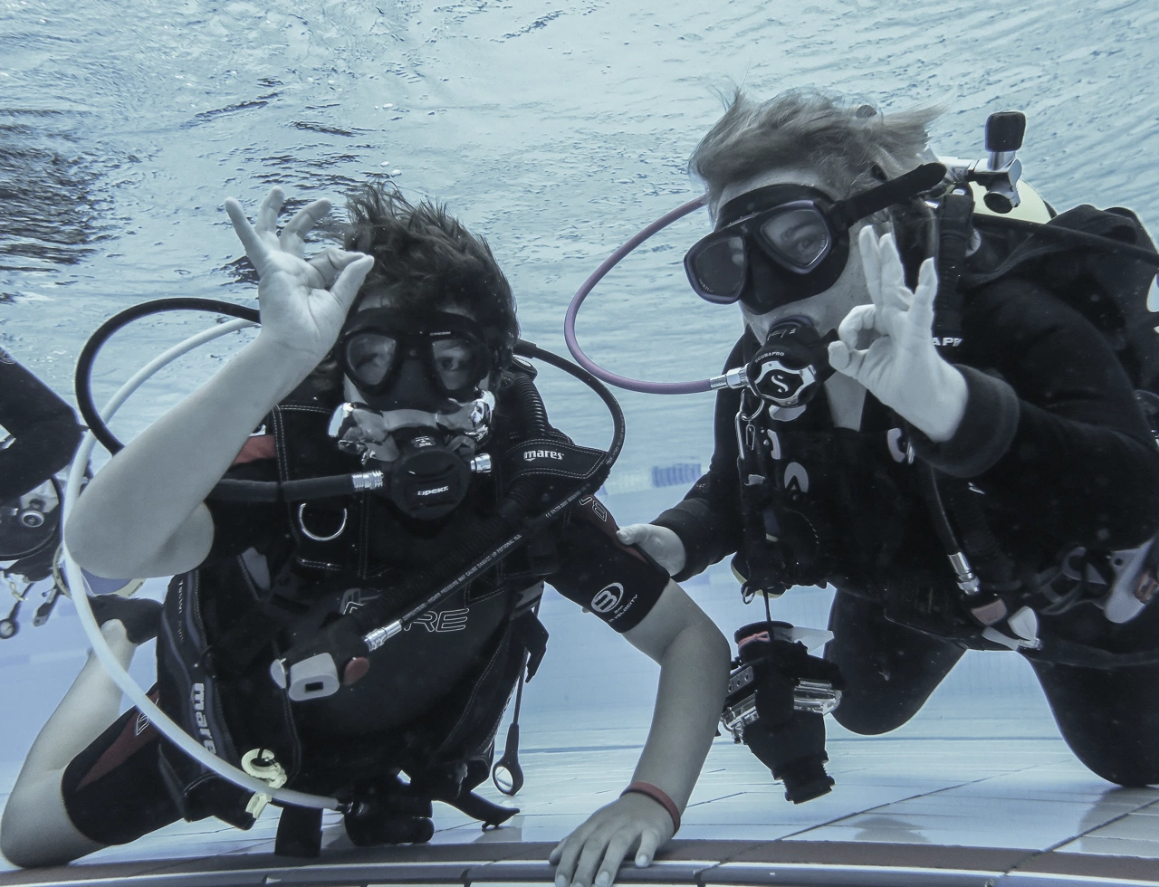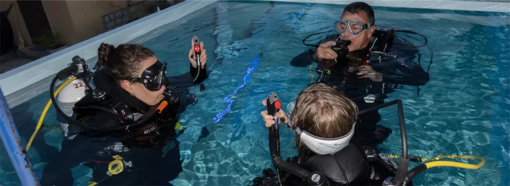 Unser Staff ist alles, von jung, bis jung geblieben und unsere Schüler finden den Staff mindestens mega cool… Wir leben unseren Traum und lieben es einfach, unser Wissen weiterzugeben. Das heisst aber auch, üben bis mann/frau es kann… Das Kompliment wirst Du in den Ferien bekommen, denn es glaubt Dir niemand, dass Du wirklich erst den Kurs gemacht hast. Cool oder? Sei dabei beim erste Hilfe Kurs mit AED und CPR und dann beim Stress und rescue im See! Oder warum nicht ein Trockentauchen, Nachttauchen oder Tieftauchen Kurs? Übe Dich einen Abend in Perfect boyency. Dann suche den Weg mit dem Navigationskurs zuerst trocken, dann im Wasser… Schnorchel mit uns durch den Abend und lerne Deine Grenzen neu kennen oder buche einen Refresher, weil die Kinder mittlerweile gross sind und Du eeendlich wieder mal tauchen gehen könntest… Du kannst auch mit dem Rebreather durchs Wasser schweben oder eine Vollgesichtsmaske testen und das alles im Pool oder in unserem Tauchcontainer.ch im See, im Y-40 oder im Meer! Wir freuen uns auf dich!